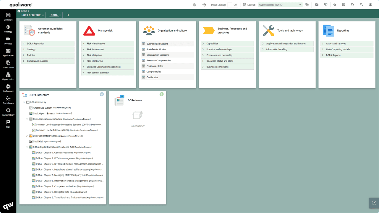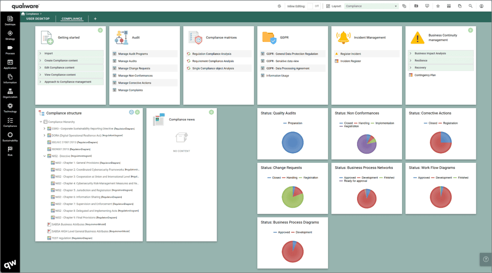 QualiWare enables you to manage these requirements within one structured governance model — avoiding duplication and fragmented documentation.