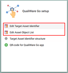 - When an object is found, the QualiWare Go logo will appear. Press it to open the main menu of the respective Target Asset Identifier.